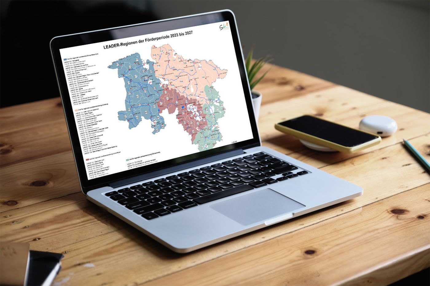 Das Netzwerktreffen der LEADER-Regionen Weser-Ems fand diesmal digital statt. (Mockup: UnicDesign/Envato Elements)