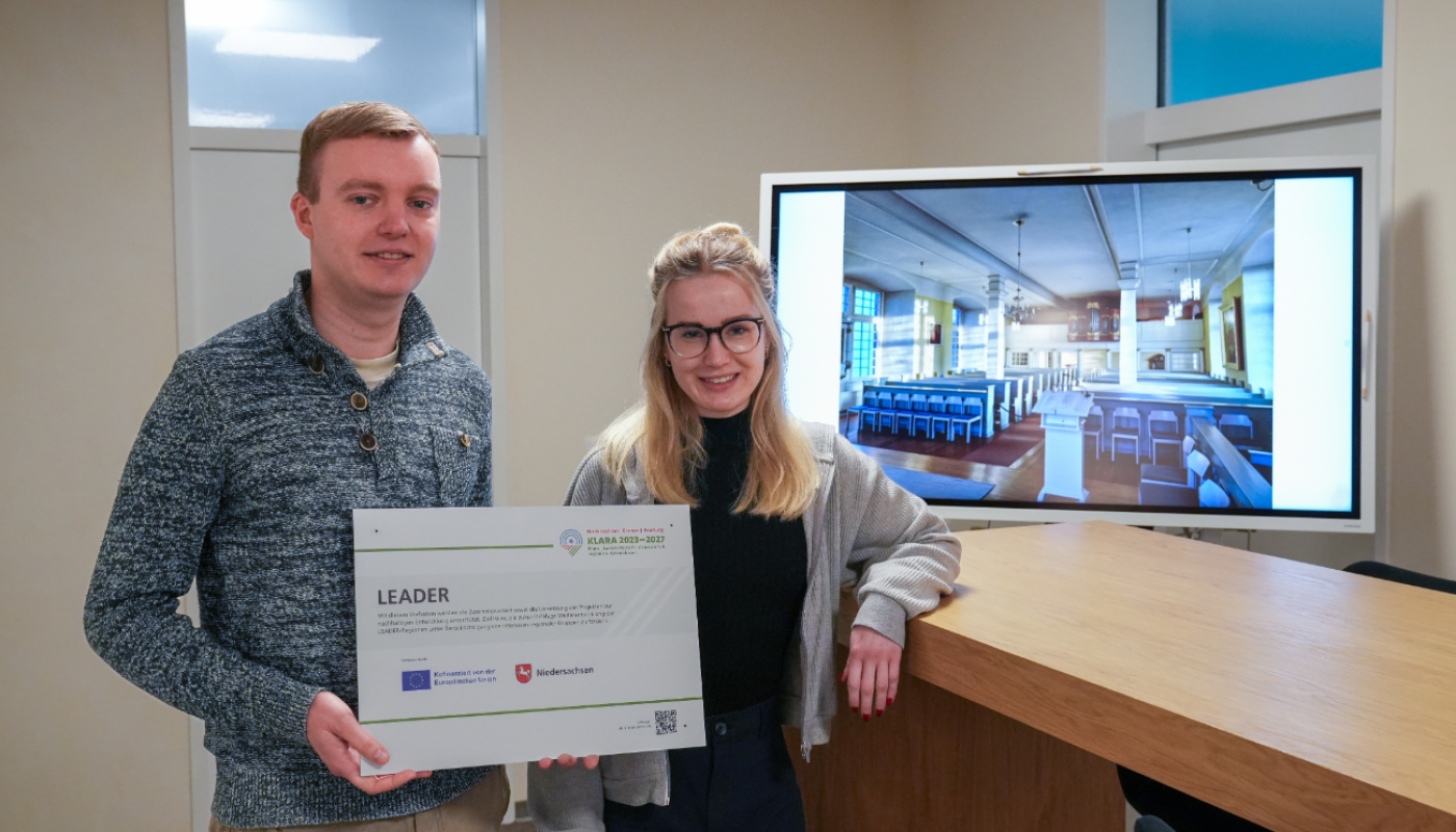 Freuen sich über den Förderbescheid für die Evangelische Schlosskirche: Christina Götz und Karsten Perkuhn vom Regionalmanagement